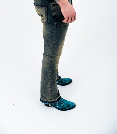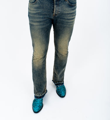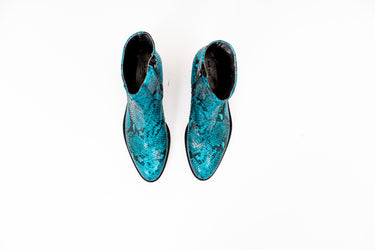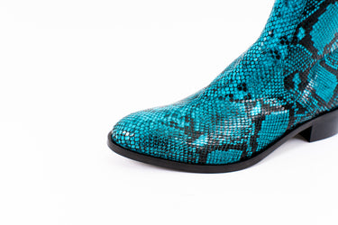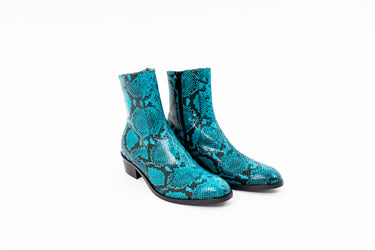 MEN BORN TO STAND OUT CHELSEA 3.5 CM BOOT - SNAKE PRINT TURQUOISE ITALIAN LEATHER